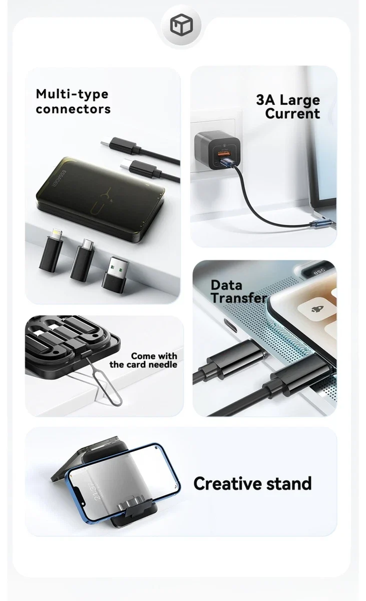 - صندوق تحويلات Essager متعدد الوظائف 4 في 1، يدعم الشحن السريع حتى 3 أمبير ونقل البيانات وميزة OTG، مع محولات متنوعة وتخزين عملي في تصميم صغير وأنيق يلبي جميع احتياجاتك اليومية.